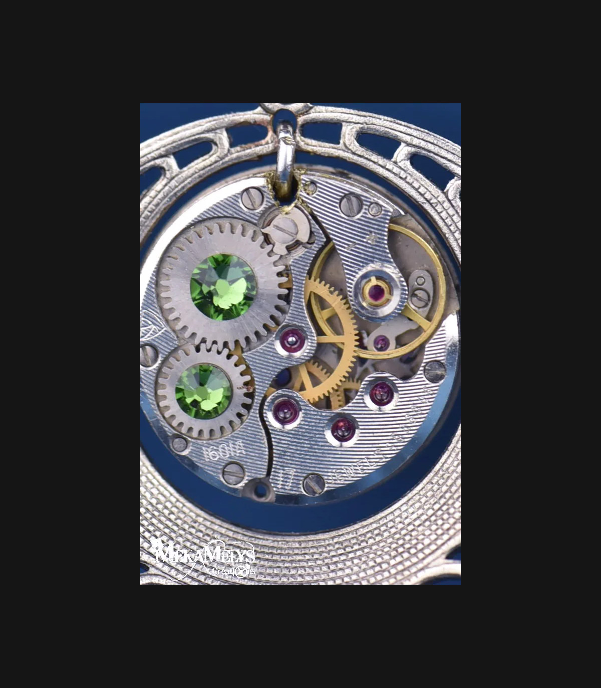 Avec son cerclage en laiton recouvert d'un placage en argent vieilli qui ressemble à une forme organique, et en son centre un ancien mouvement de montre qui a vécu, quel bel hommage de lui redonner sa qualité de bijou mécanique.